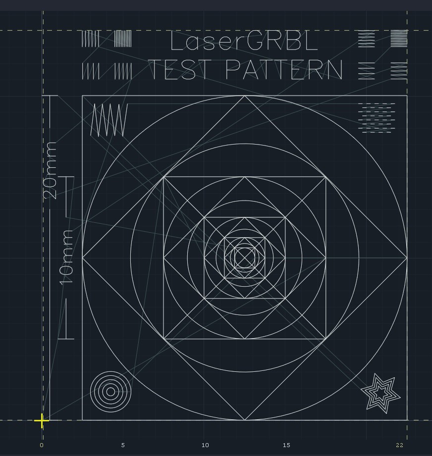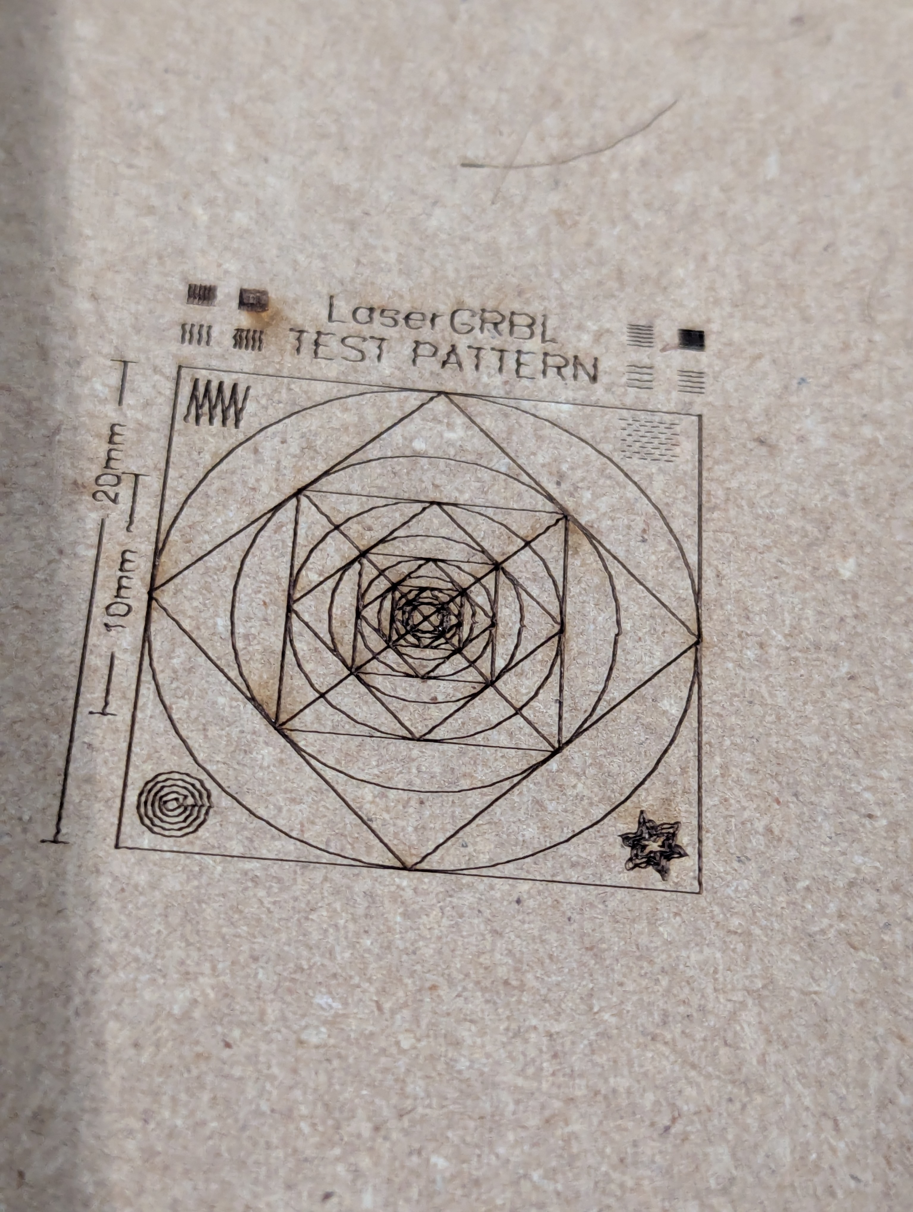 LaserGRBL provides an .svg file that can be used to test the accuracy of the engraver. This is very useful because it can give some insight into the machine's calibration.