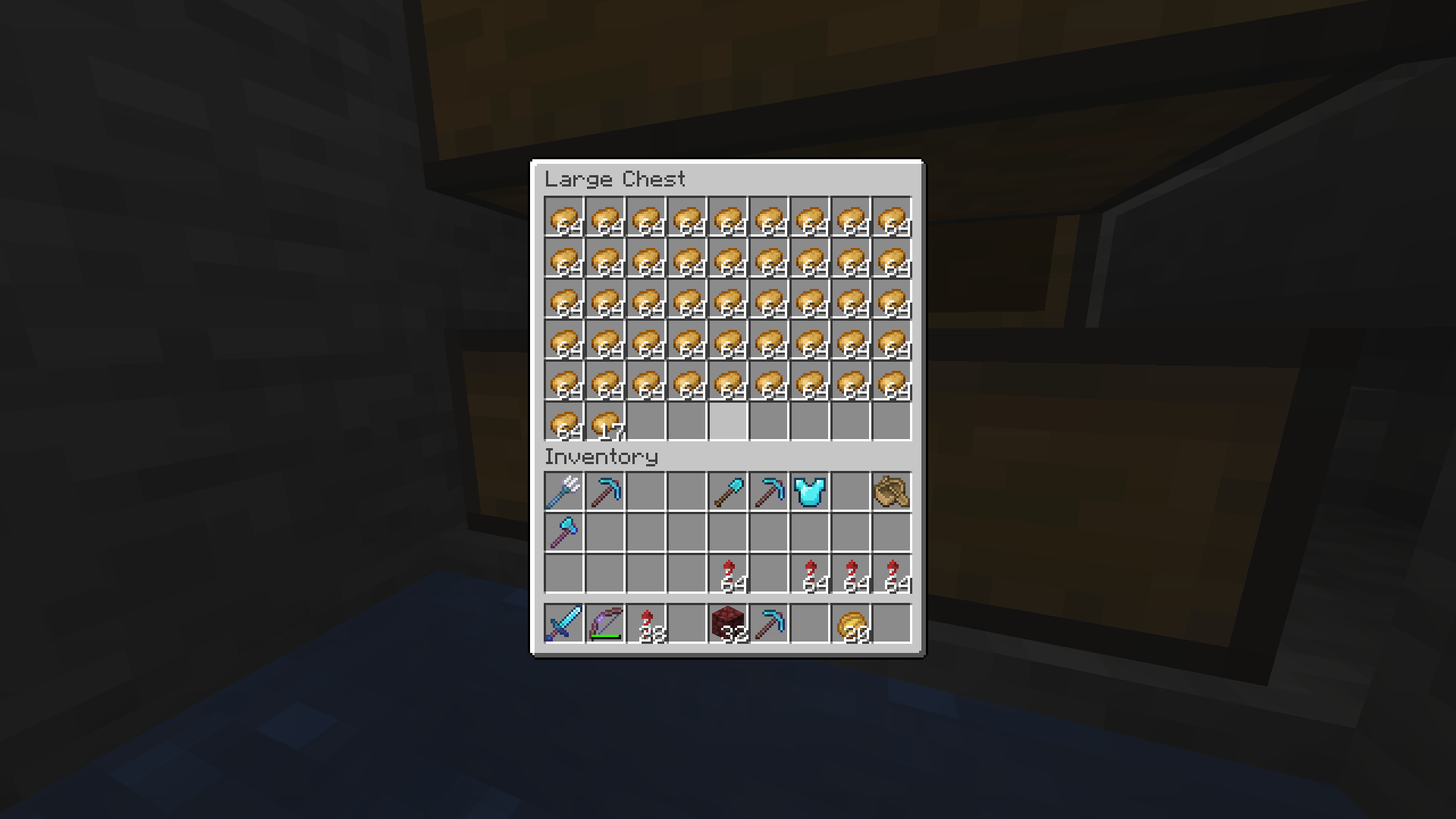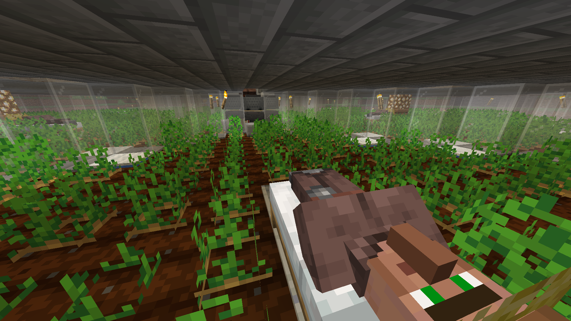 This may look excessive, but typically potato farms are an essential part of the world. We use them to trade with villagers for emeralds, which then can be used to buy many necessary items like armor, enchanted books, weapons, etc.
